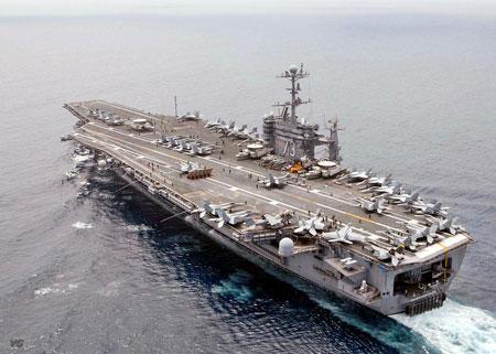 韓聯(lián)社15日稱,參加演習(xí)的是美國“華盛頓”號航母,它曾于2008年到韓國釜山參加國際觀艦式。這次“華盛頓”號的到來是美國核動力航母首次進(jìn)入朝鮮半島西海。(注:韓朝所稱的半島“西!奔粗袊Q的黃海,“東!奔慈毡竞)