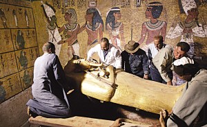 考古人員1922年在埃及南部金斯河谷墓穴發(fā)現(xiàn)圖坦卡蒙法老木乃伊。當(dāng)時木乃伊身上遍鋪珠寶飾物,還有一張做工精美的金面具。研究人員對圖坦卡蒙法老和其他數(shù)具木乃伊實施DNA檢測和電腦斷層掃描后認(rèn)定,圖坦卡蒙的祖父是阿蒙霍特普法老三世,父親是埃赫那頓法老,后者因改革古埃及眾神崇拜傳統(tǒng)、強(qiáng)制推行太陽神“一神獨尊”而著名。