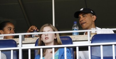 據(jù)報(bào)道,美國(guó)總統(tǒng)奧巴馬當(dāng)晚身穿白色短袖T恤,頭戴白襪隊(duì)球帽。除了第一女兒薩莎和馬莉婭,白宮高級(jí)顧問阿克塞爾羅德和奧巴馬的華人妹夫吳加儒亦有同行,在一個(gè)私人包廂觀看賽事。
