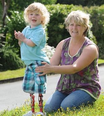 中新網(wǎng)7月29日電 英國(guó)一名3歲男童前年患上腦膜炎,要切除雙腿,最近他裝上1.25萬英鎊的仿生義肢,并重新學(xué)會(huì)走路。