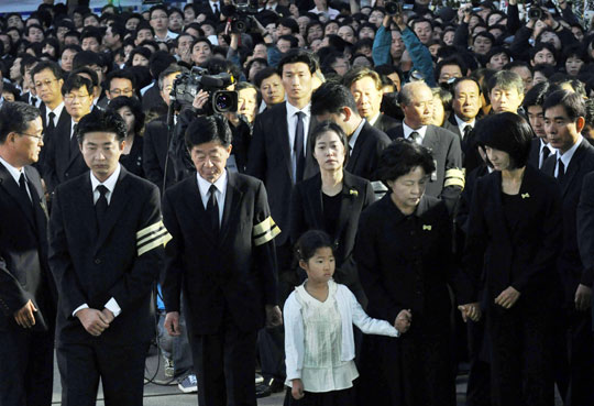 當(dāng)時,盧武鉉的孫女盧緒恩(音)似乎并不知道爺爺去世,顯得天真無暇,這更使旁邊人悲痛萬分。發(fā)喪時,天真的小緒恩坐在權(quán)良淑女士旁邊向遺像做出“V”型手勢。