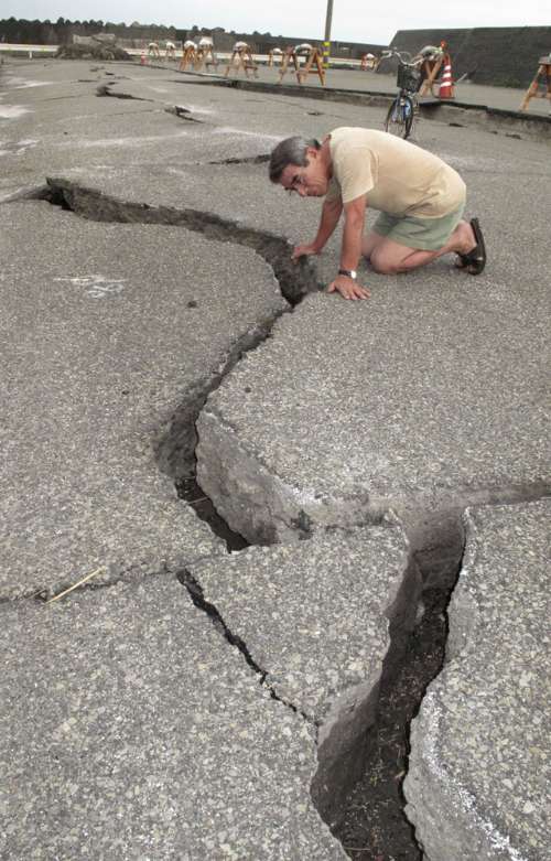在燒津港的碼頭上,地震后出現(xiàn)了一條300米長的裂痕。燒津港某漁業(yè)合作社的官員說:“這次地震和海嘯預警實在令人害怕。今天的事讓我們?yōu)檎嬲拇鬄碾y進行演習!