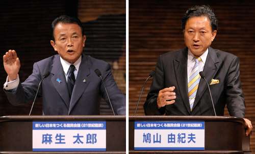 據(jù)日本共同社報(bào)道,麻生表示民主黨的政策是“沒有財(cái)源的亂花錢,是不負(fù)責(zé)任。不能把日本安全交給一個(gè)在安全保障政策上沒有一貫性的政黨”,對民主黨的執(zhí)政能力質(zhì)疑。鳩山則稱“執(zhí)政黨的政策是官僚主導(dǎo)制定,把日本變成了一個(gè)官員到民間企業(yè)就職多、浪費(fèi)多的國家。這是官僚主導(dǎo)的政治打破不了的”,訴說政權(quán)更迭的必要性。