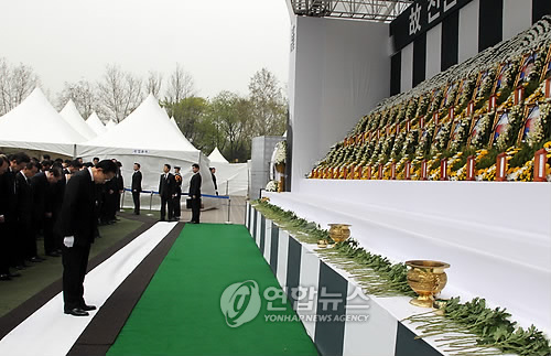 李明博在21日舉行的7大宗教界領(lǐng)導(dǎo)午餐懇談會上說:“國家計劃,對犧牲官兵給予最高待遇。”“此外,還需要采取措施,長久緬懷犧牲官兵。”