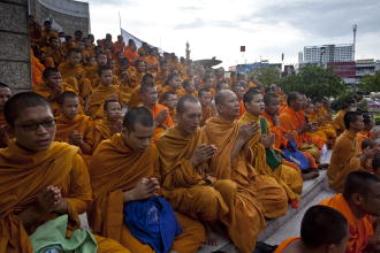 報(bào)道稱,泰國(guó)佛教協(xié)會(huì)邀請(qǐng)來自曼谷和周邊地區(qū)眾多寺廟的僧侶前往勝利紀(jì)念碑集會(huì),并向總理阿披實(shí)傳達(dá)信息,呼吁政府停止殺害“手無寸鐵”的無辜民眾。