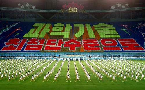 《阿里郎》的名字源于一首著名朝鮮民謠,有多達10萬人參與匯演,是全球最大型的團體表演,旨在向最高領(lǐng)導(dǎo)人金正日及其已故父親金日成致敬。報道稱,今年的《阿里郎》演出定于8月10日至9月底舉行,“向世界展現(xiàn),軍民緊密團結(jié)在領(lǐng)袖金正日的周圍,這種‘先軍’朝鮮是不可戰(zhàn)勝的”。
