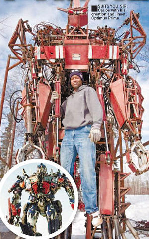 31歲的卡洛斯·歐文斯是美國阿拉斯加州瓦斯拉市的一名前美軍機(jī)械師,同時(shí)也是一名《變形金剛》系列電影的忠實(shí)粉絲。由于職業(yè)關(guān)系,卡洛斯平時(shí)特別喜歡擺弄各種機(jī)械零件,因此多年來他一直渴望造出一個(gè)《變形金剛》電影中那樣威力無比、并可任意變形的“機(jī)械戰(zhàn)士”。