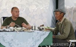 普京參觀了牧羊人簡(jiǎn)樸的住處。熱情好客的牧羊人介紹普京與自己的兩個(gè)女兒認(rèn)識(shí)。雖然牧羊人俄語(yǔ)講的很不好,他主要講圖瓦語(yǔ),但是他和普京還是找到了共同語(yǔ)言。普京把自己戴的手表摘下來(lái)送給牧羊人的兒子作為紀(jì)念,他還把自己的獵刀贈(zèng)給熱情好客的牧羊人。