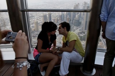 但是就在4月4日,一對意大利-伊朗籍的情侶在世界最高塔——“哈利法塔”127層的瞭望甲板上當(dāng)眾親吻,還被拍了下來。