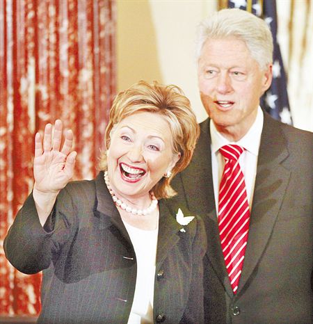 中新網(wǎng)2月4日電 美國新任國務(wù)卿希拉里2日在華府美國國務(wù)院宣誓就職,她致詞時刻意消遣自己和丈夫克林頓說,“我要好好感謝他,這輩子帶給我各式各樣的經(jīng)驗”,而說到”各式各樣“時加重語氣,似乎暗指克林頓當(dāng)年的風(fēng)流韻事,引來哄堂大笑。