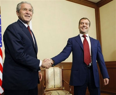 據香港《文匯報》報道,布什贊揚普京誠實坦白,會說出心中所想。普京下月就會卸任總統,由梅德韋杰夫接任。布什與梅氏首次會面后,贊賞對方為人直接,指出梅氏給他的印象非常正面,是個聰明人,很期待與他合作。梅氏表示會跟隨普京的足跡,尋求與美國發(fā)展更深厚的關系。峰會結束,布什昨午已啟程返美。