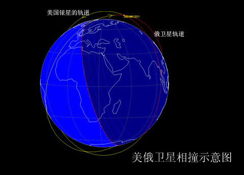 這次衛(wèi)星相撞發(fā)生在美國東部時間10日上午11時55分,地點位于西伯利亞上空490英里(約790公里)。這是人類歷史上首次發(fā)生衛(wèi)星相撞事故,兩顆相撞的衛(wèi)星分別是美國1997年發(fā)射的一顆銥星,以及俄羅斯1993年發(fā)射的一顆衛(wèi)星。