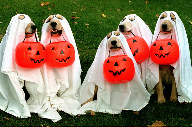 中新網(wǎng)10月31日電 每年10月31日是西方社會的萬圣節(jié),也叫鬼節(jié)。人們對于它的重視程度幾乎與圣誕節(jié)不相上下。南瓜燈、面具、化裝晚會都隨之而來。孩子們會穿上形態(tài)各異的萬圣節(jié)服裝、拎著南瓜燈挨家挨戶去討糖。然而今年的萬圣節(jié)不僅僅是大人們和小孩們的節(jié)日了,連寵物也加入了慶祝的行列,為濃濃的節(jié)日氣氛更增添了些許趣意。