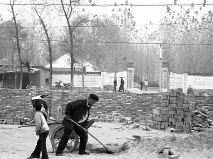 院墻很高,墻頭用水泥鑲上張牙舞爪的玻璃瓶碴。鐵門被漆成銹紅色,兩只貓眼在門上“瞪”著。高高的這座房子共9間,墻體貼著白色花紋瓷磚。室內(nèi),雙筒洗衣機(jī)裝在紙箱內(nèi)。臥室內(nèi),席夢(mèng)思床墊在多是板床的村里顯得時(shí)髦,沿墻一大排紅木組合家具落滿了灰。