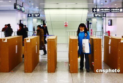12月17日,在北京地鐵5號線天通苑站出入口處,市民正穿梭于新安裝完畢的一批電子設備中。據(jù)工作人員介紹,地鐵車站安裝的新設備是自動檢售票系統(tǒng),出入口處的是閘機,其相應的配套設備還有自動售票和充值機。目前5號線全線已經(jīng)陸續(xù)安裝了新的自動檢售票系統(tǒng),但不會立即投入使用,還需要時間調(diào)試。屆時,北京地鐵1、2、13號線也將對原有的檢售票系統(tǒng)進行改造,初步預計明年3月以后,所有北京地鐵線路都要開通和使用自動檢售票系統(tǒng)。中新社發(fā) 鄭雄增 攝
