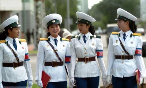 女交警是平壤一道亮麗的風景線,她們都是亭亭玉立、正值妙齡的未婚女青年,年齡從16歲到26歲不等,體貌端正、聰穎健康,身高不低于1.65米,是在眾多高中畢業(yè)生中精心挑選出來的優(yōu)秀人才。她們站在十字路口中央,手拿交通指揮棒,眼睛注視著川流往來的車輛,迅速敏捷地指揮著交通,著實一幅巾幗不讓須眉的颯爽英姿,不禁令人眼前一亮!