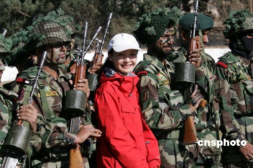 圖為參加采訪的中國記者與印軍特種兵合影。