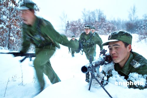 近日,黑龍江省軍區(qū)駐黑河邊防某團(tuán)老虎連官兵,抓住駐地嚴(yán)寒有利時(shí)機(jī),把部隊(duì)拉進(jìn)林海雪原,頂風(fēng)冒雪在艱苦環(huán)境中練戰(zhàn)法、練指揮。磨練官兵意志,鍛煉部隊(duì)野外生存的能力。中新社發(fā) 王忠言 攝
