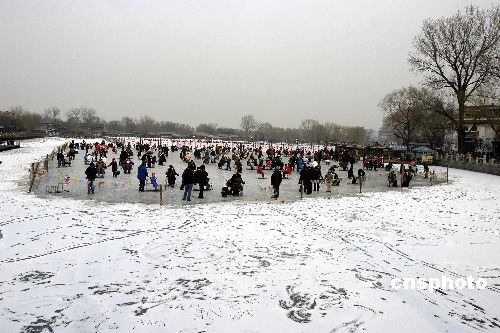 1月20日,北京周末休息的人們走出戶外享受冬日陽光,什剎海冰場(chǎng)上游人如織。中新社發(fā) 魯谷 攝