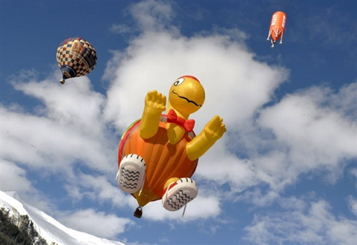 第30屆瑞士黛堡國際熱氣球節(jié)1月19日-30日在中部阿爾卑斯山區(qū)腹地的黛堡小鎮(zhèn)絢麗開場。期間有來自18個國家的140多名選手?jǐn)y90多只造型各異的熱氣球參賽。