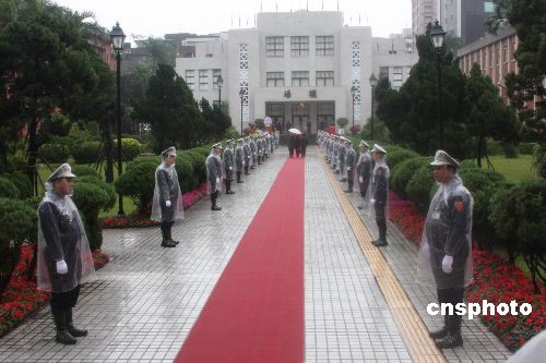 數(shù)十位腳登高筒皮靴的警官冒雨列隊(duì)在“立法院”紅地毯兩側(cè),迎接前來(lái)報(bào)到宣誓就職的臺(tái)灣第七屆“立法委員”。