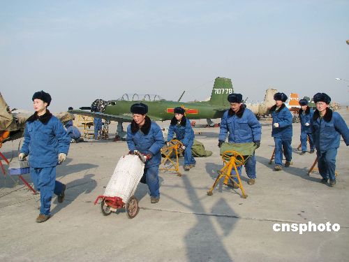 2008新年伊始,擔(dān)負(fù)新大綱飛行訓(xùn)練任務(wù)的濟(jì)空某飛行學(xué)院某團(tuán)訓(xùn)練場上呈現(xiàn)一派熱火朝天的練兵景象。該團(tuán)針對新期班訓(xùn)練任務(wù)新特點,不斷加速推進(jìn)教育訓(xùn)練創(chuàng)新發(fā)展,科學(xué)籌劃,全面深化訓(xùn)練教學(xué)改革,積極探索訓(xùn)練新方法,實施科技興訓(xùn),嚴(yán)格按綱施訓(xùn),大力加強(qiáng)飛行學(xué)員基礎(chǔ)訓(xùn)練,著力提高訓(xùn)練水平和效益,確保了節(jié)后飛行軍事訓(xùn)練緊張有序展開。中新社發(fā) 耿國慶 攝