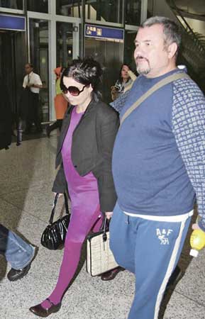 之后,穿著紫色連色裙、黑色外套的Bjork挽著手袋出現(xiàn),同行的女助手則推出BB車,工作人員就叫記者不要拍孩子的照片。Bjork的6歲女兒在BB車上亦懂得避鏡頭,索性雙手掩面。Bjork在身形高大的外籍保鑣似“人肉三文治”式夾著護送離開機場上車,沿途記者拍照,她也沒有理會,但面上也有笑容。她身邊的保鑣不時出手推開擋路的記者,但沒有動手打記者,算很斯文了。