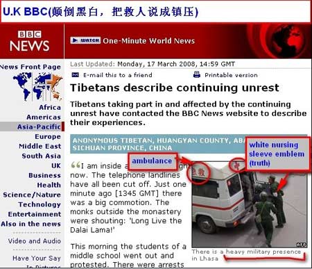 為了讓印度民眾和在印度的藏人明白事實(shí)真相,從而走出一些媒體制造的假象,中國駐印度使館21日下午邀請印度媒體,播放了中央電視臺(tái)連日來在拉薩拍攝的現(xiàn)場畫面。很多記者看后非常震驚,他們發(fā)現(xiàn)自己媒體對該事件的報(bào)道有失偏頗,這主要是他們不了解真實(shí)情況,被西方媒體的不實(shí)報(bào)道所迷惑。一名記者說:“看到那么多身穿長袍的喇嘛用腳在踢商店的門,用手在向路人投擲石塊,用鐵棍狠砸車輛,我一下子驚呆了!我一直以為,西藏喇嘛應(yīng)該是拒絕暴力的,但沒有想到他們的暴力行為讓人震驚。由此看來,達(dá)賴?yán)镆恢敝鲝埖姆潜┝χ鲝堉皇且环N漂亮的言辭而已,實(shí)際上是主張暴力的,這次暴亂就是一個(gè)明證。以后的報(bào)道中,我一定要慎重處理,不能偏聽偏信達(dá)賴等人的說法了。”