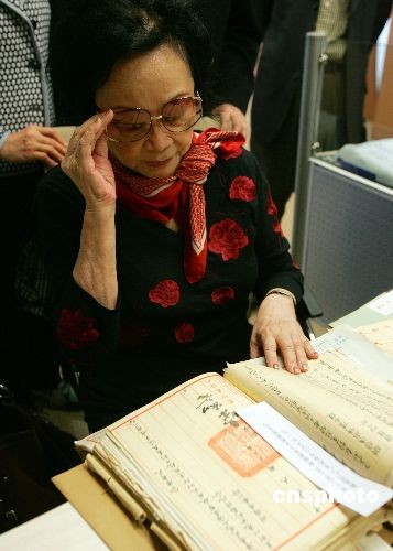 圖為馮宋瓊頤在翻閱宋子文親筆簽署的公文原件。中新社發(fā) 湯彥俊 攝