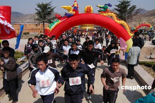 2008年4月2日,山東省日照市舉行全民健身與奧運(yùn)同行萬人登山活動(dòng)暨馬鬐山風(fēng)景區(qū)啟用慶典,上萬名群眾利用登山健身的方式,迎接2008年奧運(yùn)會(huì)。作者: 陳為峰