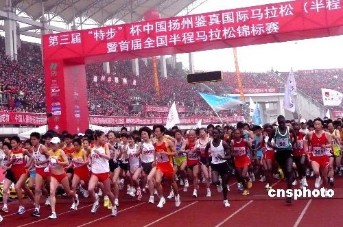 4月6日,第三屆鑒真國際馬拉松半程賽暨全國首屆半程馬拉松錦標(biāo)賽在揚(yáng)州拉開戰(zhàn)幕。來自二十多個(gè)國家和地區(qū)的一萬多名馬拉松運(yùn)動員和長跑愛好者參與了此次盛會。這是中國唯一以人名命名的馬拉松賽事,以曾經(jīng)東渡日本的唐朝大和尚鑒真。經(jīng)過激烈的角逐,中國選手包攬了男女半程馬拉松的冠軍,本次馬拉松比賽男女前三名成績均破賽會紀(jì)錄。