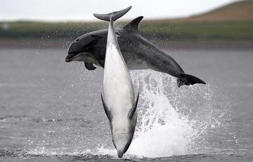 旁觀者在看到瓶鼻海豚跳水嬉游的景象時經(jīng)常會誤認(rèn)為他們在觀看一場精心設(shè)計(jì)的演出,但對于那些在船上近距離觀看海豚的人們來說,海豚跳水嬉游的景象很自然,它們完全是率性而為。那些幸運(yùn)的游客可以看到三頭海豚在藍(lán)色的天空下跳水、海豚捕食鮭魚的跡象。一位乘船觀看海豚的游客稱:“這真是難以置信,我們與它們那么接近,這看起來好像是它們試圖想向我們展示它們的能力。它們動作的協(xié)調(diào)性難以置信,你有時會認(rèn)為它們會撞到一起。觀看它們捕食鮭魚是一件更棒的事情!
