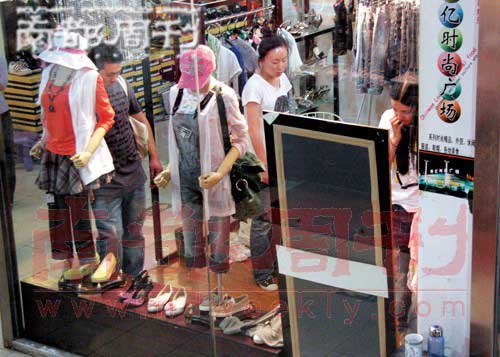 小宋佳在時(shí)裝店里挑衣服,猛男在一旁把關(guān)。