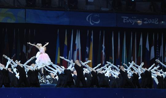 9月6日20時,北京2008年殘奧會開幕式在國家體育場“鳥巢”舉行,圖為開幕式上的文藝表演《太陽鳥》。 中新社發(fā) 盛佳鵬 攝