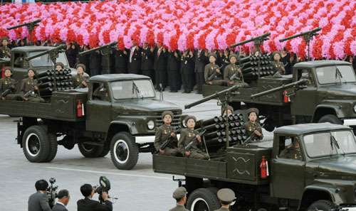 有報道說,閱兵儀式上出動了炮兵團(tuán)、地對空導(dǎo)彈發(fā)射器以及槍支等武器。朝鮮國防委員會副委員長金永春次帥等軍隊領(lǐng)導(dǎo)在指揮臺觀看了長達(dá)約30分鐘的儀式。閱兵儀式后,由10萬名平壤市民舉行了盛裝游行,大學(xué)生等人進(jìn)行了火把演出。