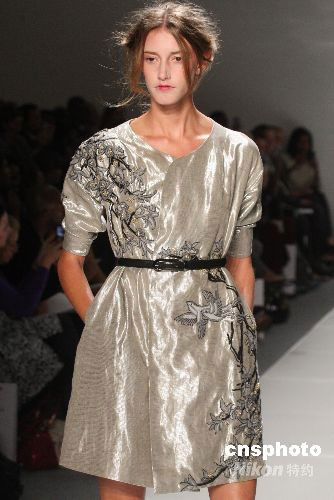 圖為世界名模參加中國女裝設(shè)計師羅崢作品展示。中新社發(fā) 錢興強 攝