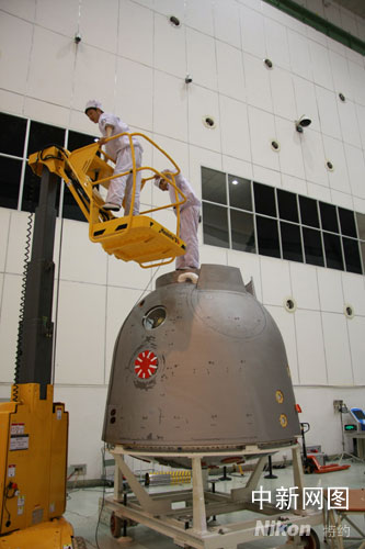 二十三日上午,神舟七號載人航天飛行任務進行了發(fā)射場區(qū)最后一次船箭地聯(lián)合檢查,標志著“神七”載人飛船已進入發(fā)射倒計時。圖為飛船返回艙測試資料圖片。