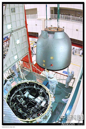 中國(guó)神舟七號(hào)載人航天飛船發(fā)射在即。圖為飛船對(duì)接。袁明月 攝
