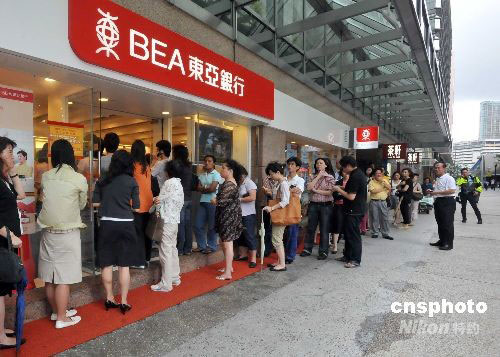九月二十四日,大批香港市民在香港東亞銀行排隊(duì)取款。當(dāng)日下午,東亞銀行發(fā)表聲明,指市場(chǎng)近日有關(guān)其財(cái)政不穩(wěn)等的相關(guān)惡意謠傳,絕非事實(shí)和全無(wú)任何事實(shí)根據(jù)。