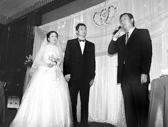 上海男籃主帥李秋平(右)登場(chǎng)證婚 洪南麗