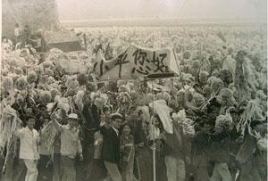 在游行隊(duì)伍中,北京大學(xué)學(xué)生舉起寫著“小平您好”的橫幅走過檢閱臺(tái)前,引起陣陣歡呼聲。簡(jiǎn)短的四個(gè)字,濃縮了深厚的感情。