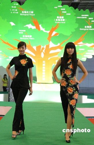 2008年10月16日,為期三天的第八屆中國(guó)國(guó)際糧油產(chǎn)品及設(shè)備技術(shù)展覽會(huì)在南京國(guó)展中心舉行。交易會(huì)期間舉行的用玉米蛋白纖維制成的精美時(shí)裝表演,給觀眾帶來視覺沖擊的同時(shí)也從新的角度展現(xiàn)了糧食深加工的魅力。中新社發(fā) 阿董 攝