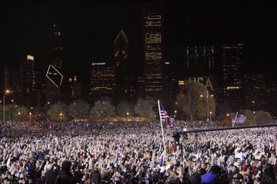 奧巴馬在選舉結(jié)果揭曉以后發(fā)表了以“美國的變革”為主題的獲勝演說。他說,“美國的變革時代已到來”。