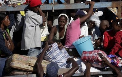 中新網(wǎng)1月19日電 據(jù)外電19日?qǐng)?bào)道,數(shù)以千記的海地災(zāi)民爭(zhēng)相擠上開(kāi)往太子港郊區(qū)的公共汽車(chē),希望在那里能夠更容易的找到食物和水。
