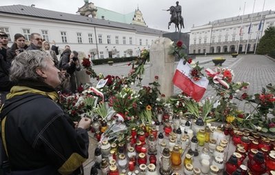 代行總統(tǒng)職權的波蘭眾議院議長科莫羅夫斯基10日宣布舉行為期一周的“全國哀悼日”,悼念當天在飛機失事中遇難的波蘭總統(tǒng)卡欽斯基及其隨行人員。俄羅斯總統(tǒng)梅德韋杰夫10日也宣布4月12日為俄羅斯的全國哀悼日。