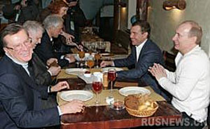 當他們五個人在名為“遠征”的飯店就座后,普京向擔任國家公職前曾多次參加地質(zhì)考察的米羅諾夫詢問道:“您去過‘考察’多少年?”(在俄文中,“考察”和“遠征”是同一個詞)。普京借此開玩笑建議聽取米羅諾夫的點菜經(jīng)驗。在眾人的笑聲中米羅諾夫回答到:“18年,F(xiàn)在就開始第19個年頭了。”