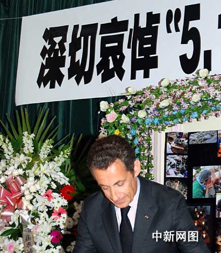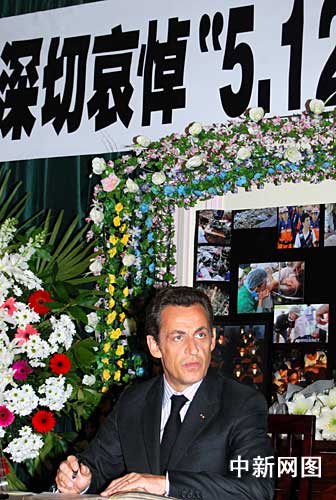 法國(guó)總統(tǒng)薩科奇悼念中國(guó)汶川地震遇難者。作 者:吳衛(wèi)中