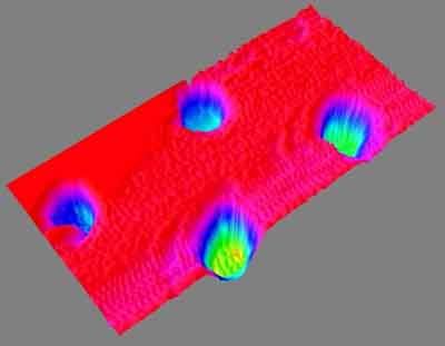 在美國宇航局網(wǎng)站公布的一幅照片上,位于顯微鏡硅襯底上的4個土壤顆?瓷先ハ4個小球,而實際上每個顆粒的直徑僅為1微米,相當(dāng)于1米的一百萬分之一。這樣的觀測精細(xì)度只有原子力顯微鏡才能達(dá)到,而且它可以對顆粒進(jìn)行三維觀測。