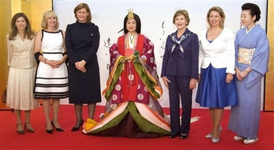 中新網(wǎng)7月8日電 7日北海道洞爺湖G8峰會開幕當(dāng)天,日本首相福田康夫的夫人貴代子以日本茶款待了各國首腦夫人。她們還觀看了日本傳統(tǒng)和服“十二單”的穿著方式,感受了日本文化的魅力。