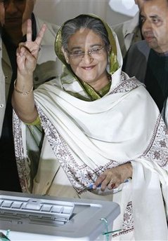 孟加拉國(guó)人民聯(lián)盟領(lǐng)導(dǎo)人謝赫•哈西娜29日投票。